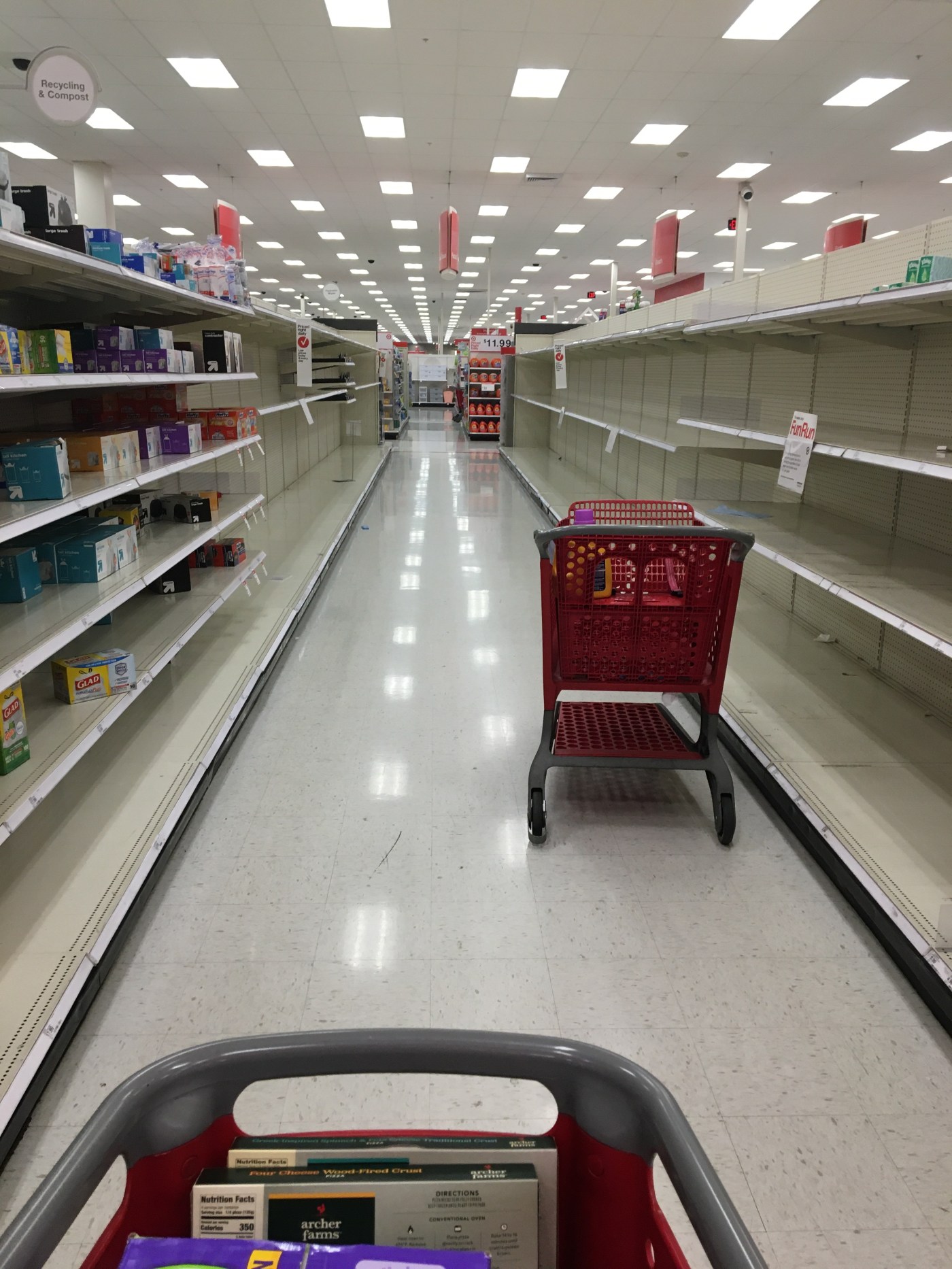 Went shopping at Target. Walked through the veil full mostly of fear and anxiety. Strangely, most employees at my local Target were warm and welcoming. A bright shining spot in these lame times.