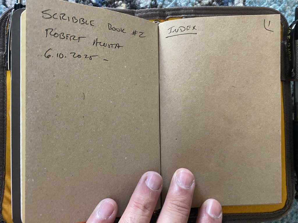 Speaking of, the first Scribble Book (guess that name is sticking) is all done. Took a couple of months, and some help from my sons, but it’s done. And, honestly, it might be the practice most helpful to me. So long as I keep at it. The mixture of drawing, writing dialogue I overhear, has led to some small strides in my drawing skills, something I used to be partially proud of. Like Julian Simpson said in his article about notebooks, “Writing with a pen puts your brain in motion, and motion is lotion.”