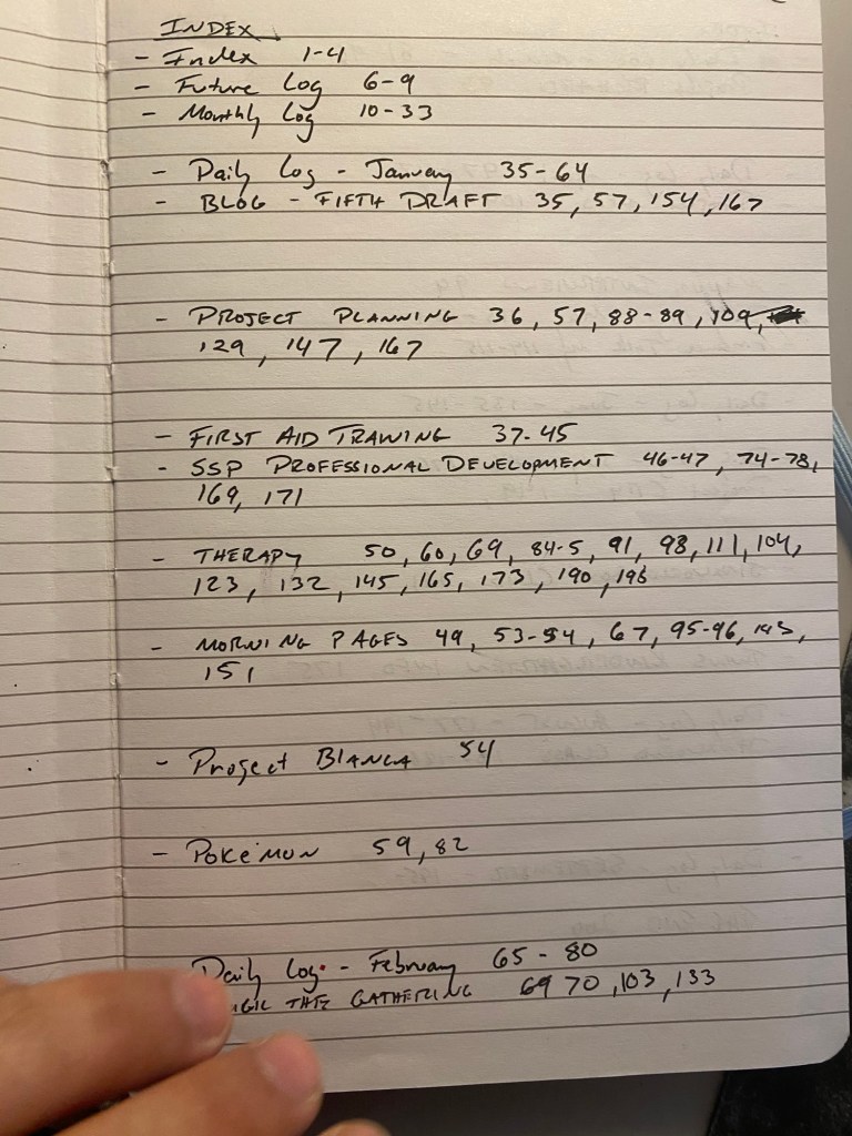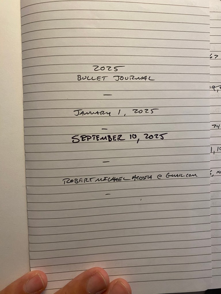 I’ve stopped Bullet Journaling once before, shortly after COVID halted the world, but picked it back up. Through that time I switched back and forth between using the one designated large notebook and a series of pocket notebooks as my Daily Log/scratchbook. Eventually, I settled on one large notebook because it felt grand. Important. And don’t dismiss that feeling. If something feels important, then you can treat it as important. I could use it to break out nuggets of ideas, log things for the long run, do my Morning Pages (another practice of mine) when I needed, rewrites for novels, and so on, all in one place.